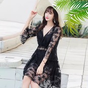 【送料無料】 ワンピースビキニ 水着 モノキニ Vネック 半袖 Aライン フレア レース 透け感 シースルー かわいい 大人可愛い きれいめ 華やか 大人 大人っぽい おしゃれ 主役級 女っぽ シック 花柄 夏 海 ビーチ プール リゾート サーフィン レディース 女性用 ママ 20代 30代 40代 ファッション 定番 ベーシック 着痩せ スタイルアップ 体型カバー 二の腕カバー 高見え 垢抜け ブラック 大人カラー モノトーン