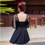 【送料無料】 ワンピースビキニ 2色 モノキニ Vネック 長袖 Aライン フレア レース 切り換え 異素材ドッキング 透け感 シースルー かわいい 大人可愛い きれいめ シンプル カジュアル ナチュラル 華やか 大人 大人っぽい 主役級 女っぽ フェミニン ガーリー 薄手生地 花柄 夏 海 ビーチ プール リゾート サーフィン レディース 女性用 ママ 30代 40代 ファッション 定番 ベーシック 着痩せ スタイルアップ 体型カバー 二の腕カバー 高見え 垢抜け ホワイト ブラック 大人カラー