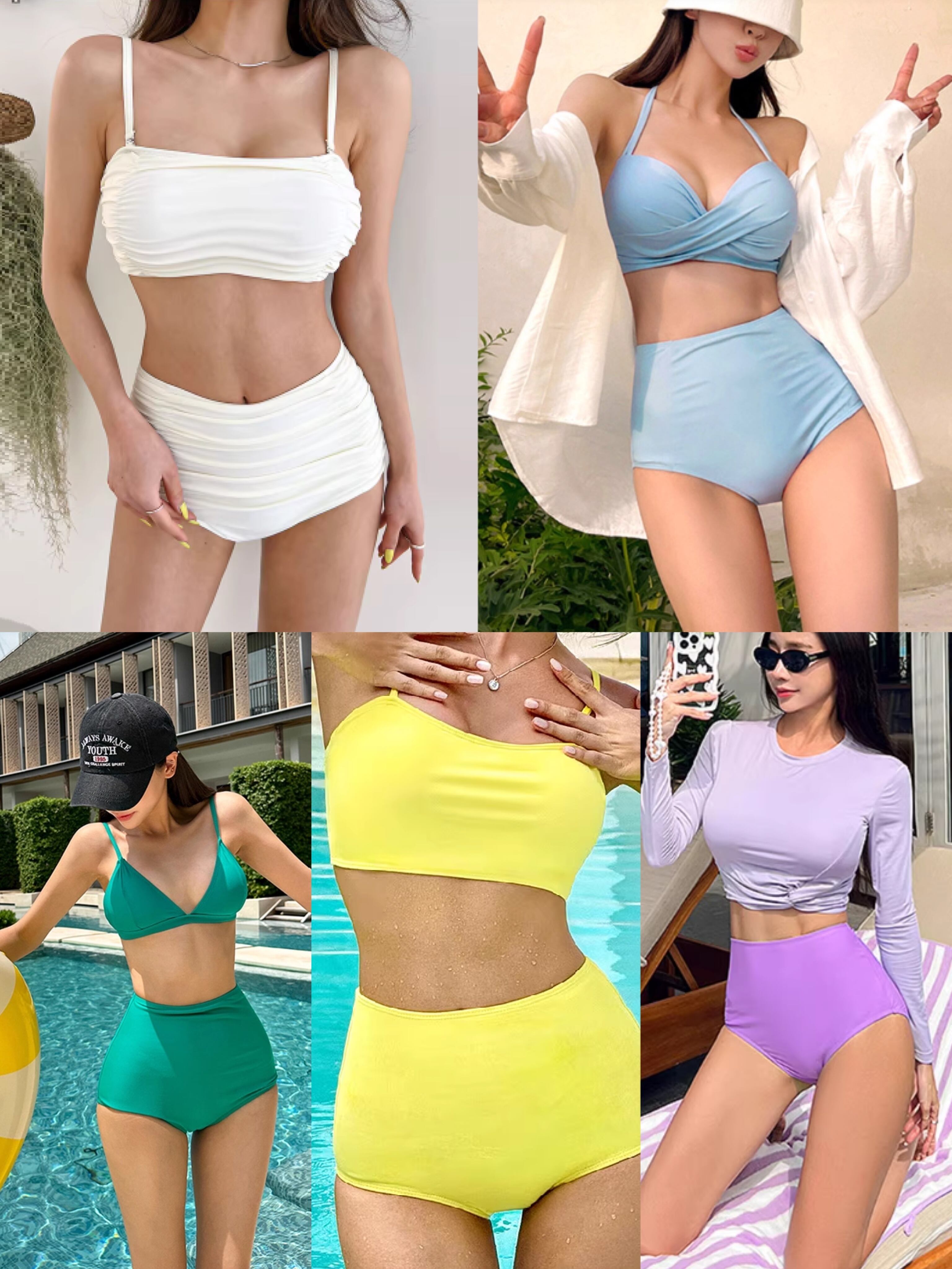 5色から選べるこの水着は、シンプルなデザインながら華やかな印象を与え、大胆でフェミニンな雰囲気を演出します。