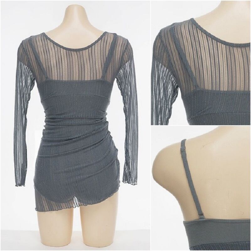 【送料無料】 水着 スイムウェア スイム ウエア レディース ラッシュガード 長袖 ワンピース水着 ハイウエスト シアー シースルー 透け感 カシュクール Vネック レイヤード風 重ね着風 リボン りぼん ママ水着 大人 上品 フェミニン 体型カバー 細見え 脚長 20代 30代 40代 プール 海 旅行 グレー 夏