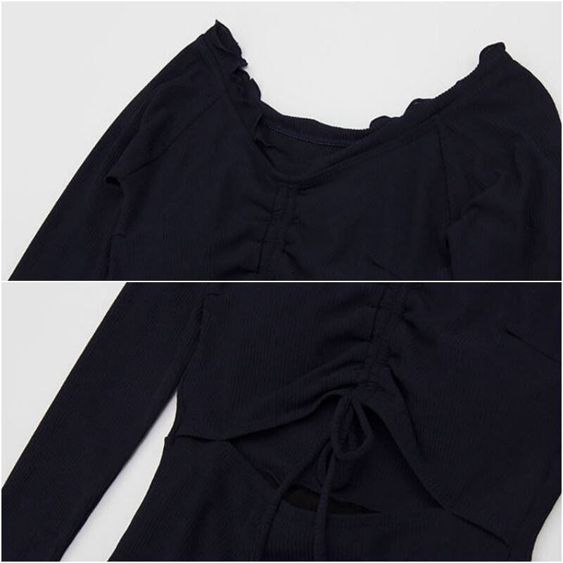 【送料無料】 水着 2色 スイムウェア スイム ウエア ワンピース水着 水着 ワンピース 長袖水着 長袖 水着 ラッシュガード ドローストリング リボン りぼん カットアウト 肌見せ メローフリル メロウフリル ハイウエスト 無地 シンプル セクシー おしゃれ 大人 可愛い 人気 ママ水着 体型カバー お腹カバー 細見え 20代 30代 40代 プール 海 旅行 ネイビー グレー 夏