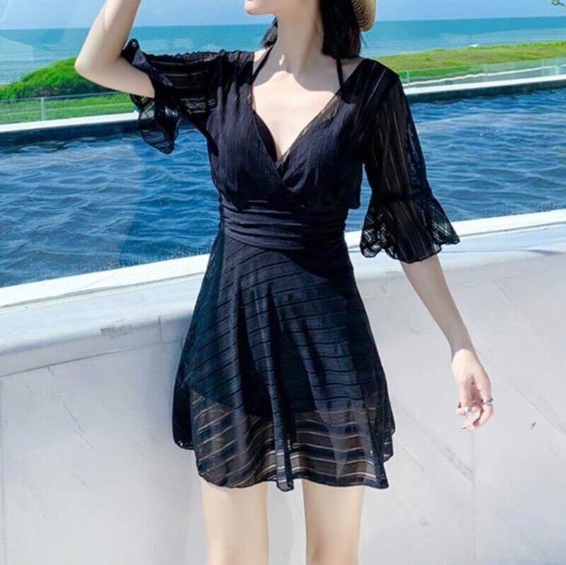 【送料無料】 水着 2色 スイムウェア スイム ウエア 大きいサイズ プラスサイズ ワンピース水着 水着 ワンピース ラッシュガード 五分袖 カシュクール Vネック 深Vネック 背中あき セクシー ホルターネック スカート ハイウエスト おしゃれ 大人 可愛い 上品 フェミニン 人気 ママ水着 体型カバー お腹カバー 細見え 20代 30代 40代 プール 海 旅行 ブラック イエロー 夏