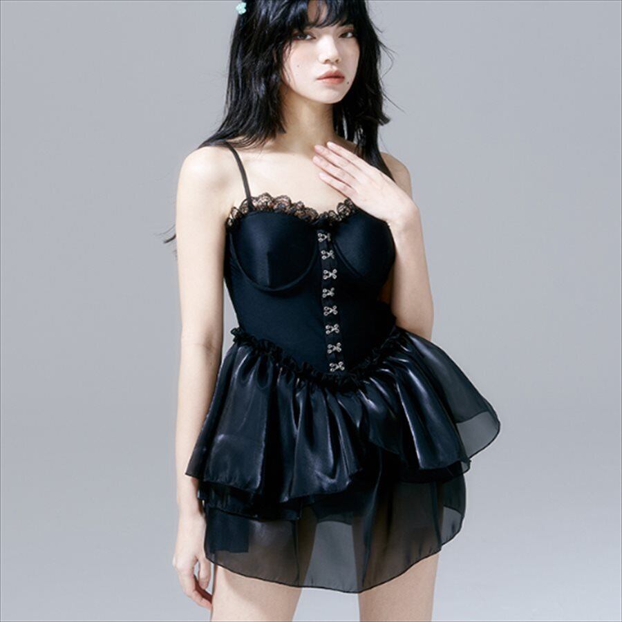 【送料無料】 水着 ワンピース モノキニビキニ 無地 フレア Aライン 体系カバー エレガント系 きれいめ 大人可愛い フェミニン レース 体系カバー プール ビーチ リゾート ナイトプール ビーチパーティ 海 レディースファッション 可愛い 20代 30代
