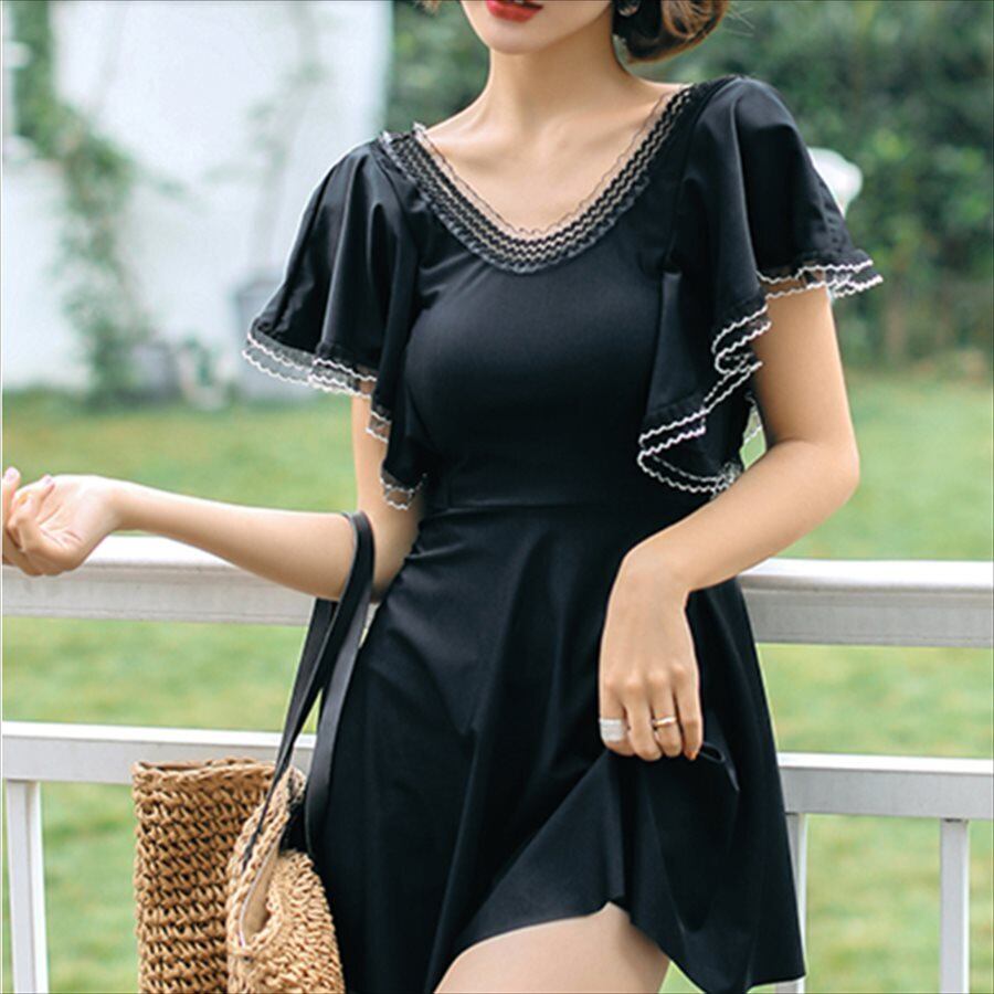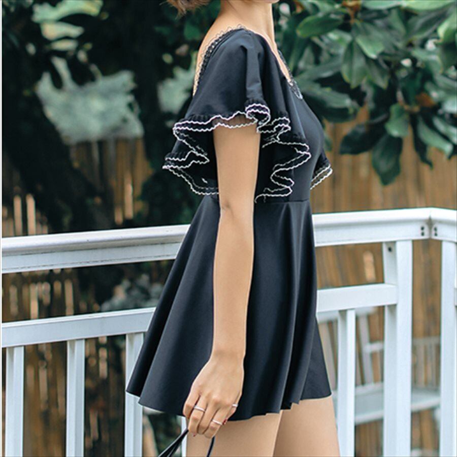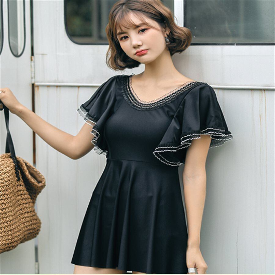 【送料無料】 ワンピースビキニ モノキニ 水着 無地 半袖 カジュアル系 フレア袖 ラウンドネック 夏 20代 30代 体系カバー プール ビーチ リゾート ナイトプール ビーチパーティ 海 水着 レディースファッション 可愛い