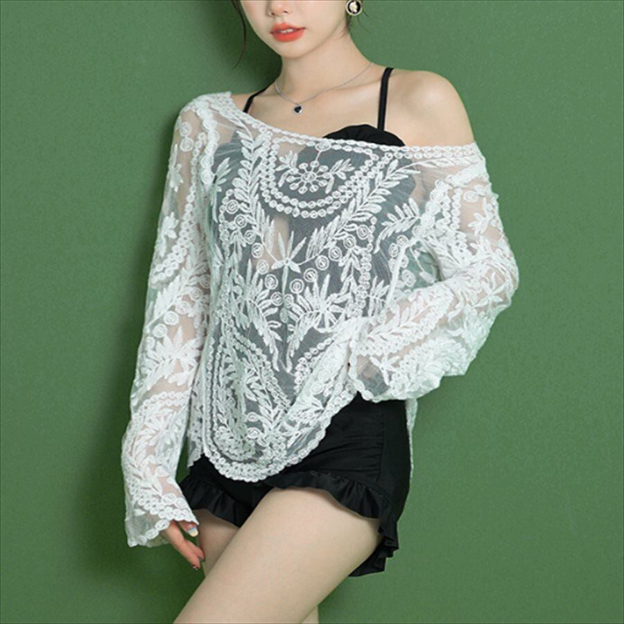 【送料無料】 水着 ビキニ 2色 ガウン シャツ モノキニ パンツ 2点セット フリル 透け感 レース シンプル かわいい 大人可愛い きれいめ カジュアル コンサバ おしゃれ お洒落 レトロ ガーリー 個性派 こなれ感 フェミニン レディライク 抜け感 無地 花柄 レディース 女性用 ママ 大人女子 夏 海 ビーチ プール リゾート 体型カバー 定番アイテム 着痩せ オルチャン 韓国 スタイル プチプラ 楽ちん ファッション カラバリ 日焼け防止 UVカット 紫外線対策 S M L XL 黒 青