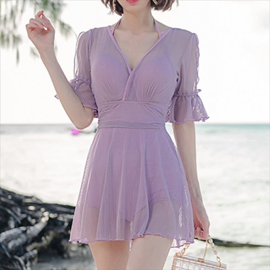 【送料無料】 水着 ビキニ 2色 モノキニ ワンピース水着 半袖 袖あり ワンピース Aライン フレア 透け感 シースルー Vネック インナーパンツ シンプル かわいい 大人可愛い きれいめ カジュアル コンサバ 上品 エレガント 華やか 大人っぽい おしゃれ お洒落 レトロ ガーリー こなれ感 フェミニン レディライク 抜け感 無地 20代 30代 40代 レディース 女性用 ママ 大人女子 夏 海 ビーチ プール リゾート プチプラ 即納 ファッション カラバリ 日焼け防止 UVカット 紫外線対策