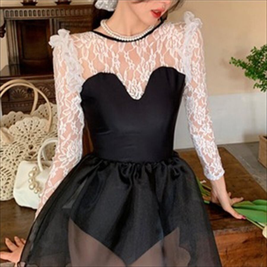 【送料無料】 水着 長袖 モノキニビキニ 体系カバー Aライン フレア 30代 40代 夏 プール ビーチ リゾート ナイトプール ビーチパーティ 海 レディースファッション 可愛い 透け感 シースルー 体系カバー レース フリル エレガント系 きれいめ 大人可愛い