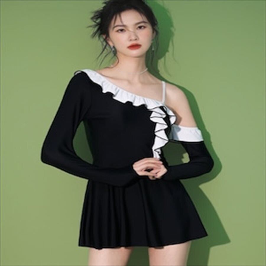 【送料無料】 モノキニビキニ 水着 ワンピースビキニ バイカラー Aライン フレア 体系カバー バイカラー 無地 エレガント系 きれいめ 大人可愛い フェミニン ワンショルダー 30代 40代 夏 レディースファッション 可愛い プール ビーチ リゾート ナイトプール ビーチパーティ