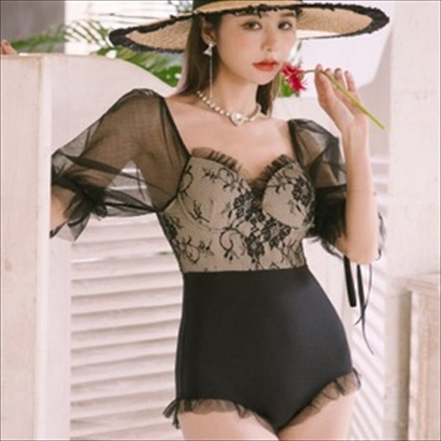 【送料無料】 モノキニビキニ 水着 ワンピースビキニ レース Aライン フレア 体系カバー こなれ感 きれいめ 大人可愛い フェミニン フリル 半袖 透け感 シースルー 夏 30代 40代 レディースファッション 可愛い