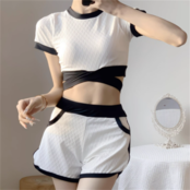 【送料無料】 水着 ビキニ ラッシュガード タンキニ パンツ 3点セット 半袖 クルーネック リボン バックリボン シンプル バイカラー かわいい 大人可愛い きれいめ カジュアル コンサバ 上品 華やか 大人っぽい おしゃれ お洒落 個性派 こなれ感 レディライク 抜け感 無地 20代 30代 40代 レディース 女性用 ママ 大人女子 夏 海 ビーチ プール リゾート 体型カバー 定番アイテム オルチャン 韓国 プチプラ インスタ映え 即納 ファッション 日焼け防止 UVカット 白 ホワイト