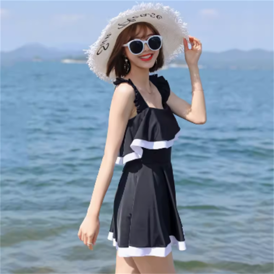 【送料無料】 水着ビキニ スイムウェア 2色 モノキニ ワンピース パッド付き Aライン フレア かわいい きれいめ コンサバ シンプル カジュアル ナチュラル 華やか 大人っぽい おしゃれ 存在感 ガーリー 個性的 無地 10代 20代 30代 40代 レディース 女性用 夏 海 ビーチ プール リゾート 水泳 体型カバー 着痩せ 韓国系 オルチャン ファッション コーデ スタイル 定番 プチプラ インスタ映え バイカラー
