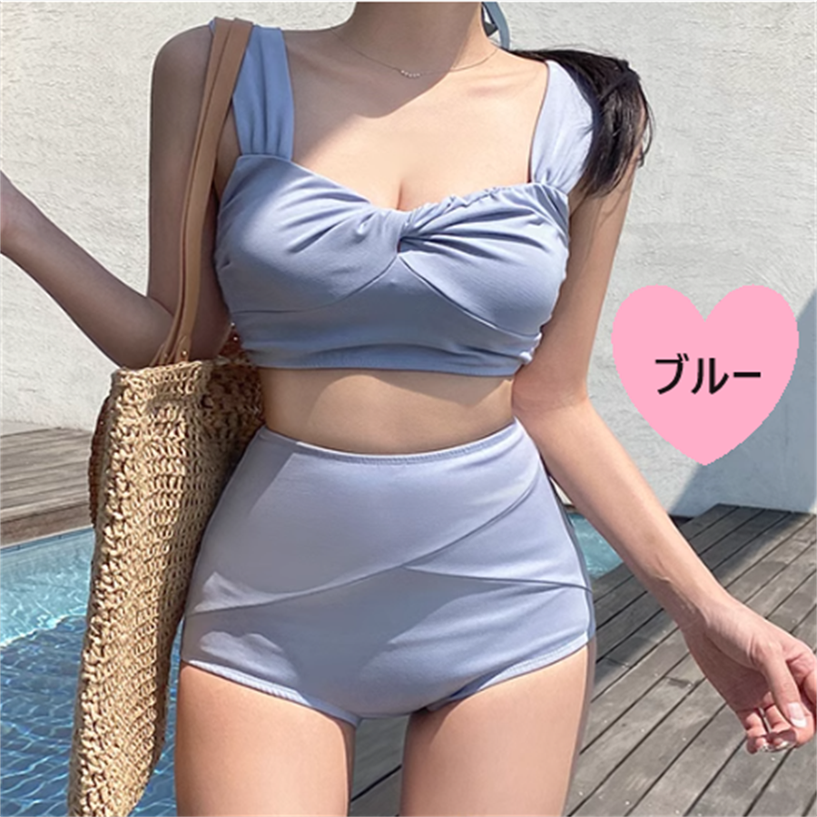 【送料無料】 水着ビキニ スイムウェア10代 2色 タンキニ ラウンドネック パッド付き ハイウエスト 上下セット かわいい きれいめ コンサバ シンプル カジュアル ナチュラル 大人っぽい おしゃれ ガーリー 個性的 モード系 無地 10代 20代 30代 40代 レディース ねじれ リボン風 女性用 夏 海 ビーチ プール リゾート 水泳 体型カバー 着痩せ 韓国系 オルチャン ファッション コーデ スタイル 定番 プチプラ インスタ映え ブルー ネイビー 大人カラー モノトーン