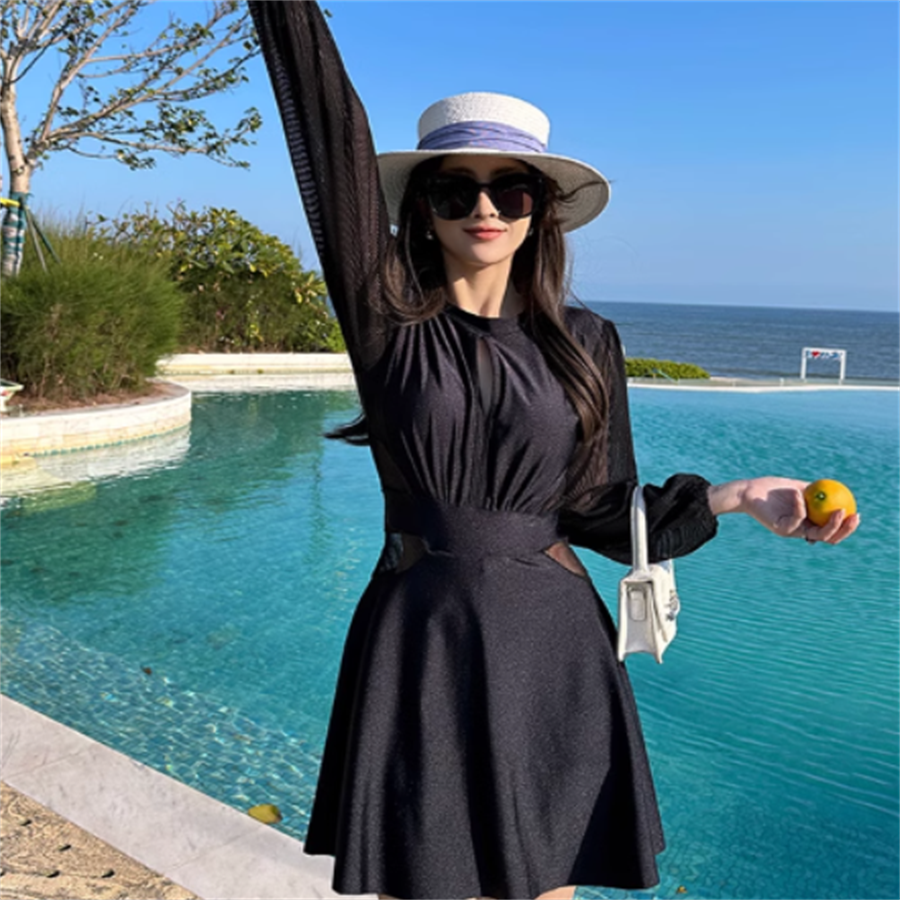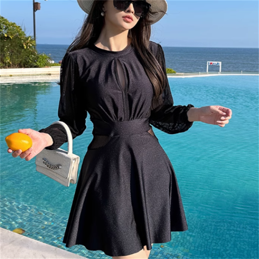 【送料無料】 水着ビキニ スイムウェア10代 2色 モノキニ ワンピース 袖あり 長袖 パッド付き Aライン フレア かわいい きれいめ コンサバ シンプル カジュアル ナチュラル フェミニン 華やか 大人っぽい おしゃれ ガーリー モード系 無地 10代 20代 30代 40代 レディース 女性用 夏 海 ビーチ プール リゾート 水泳 体型カバー 二の腕カバー 着痩せ ファッション クルーネック コーデ スタイル 定番 プチプラ インスタ映え 大きい 大きめ ビッグサイズ 黒 ブラック ピンク