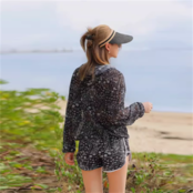 フード付きのラッシュガードとタンキニビキニの3点セット